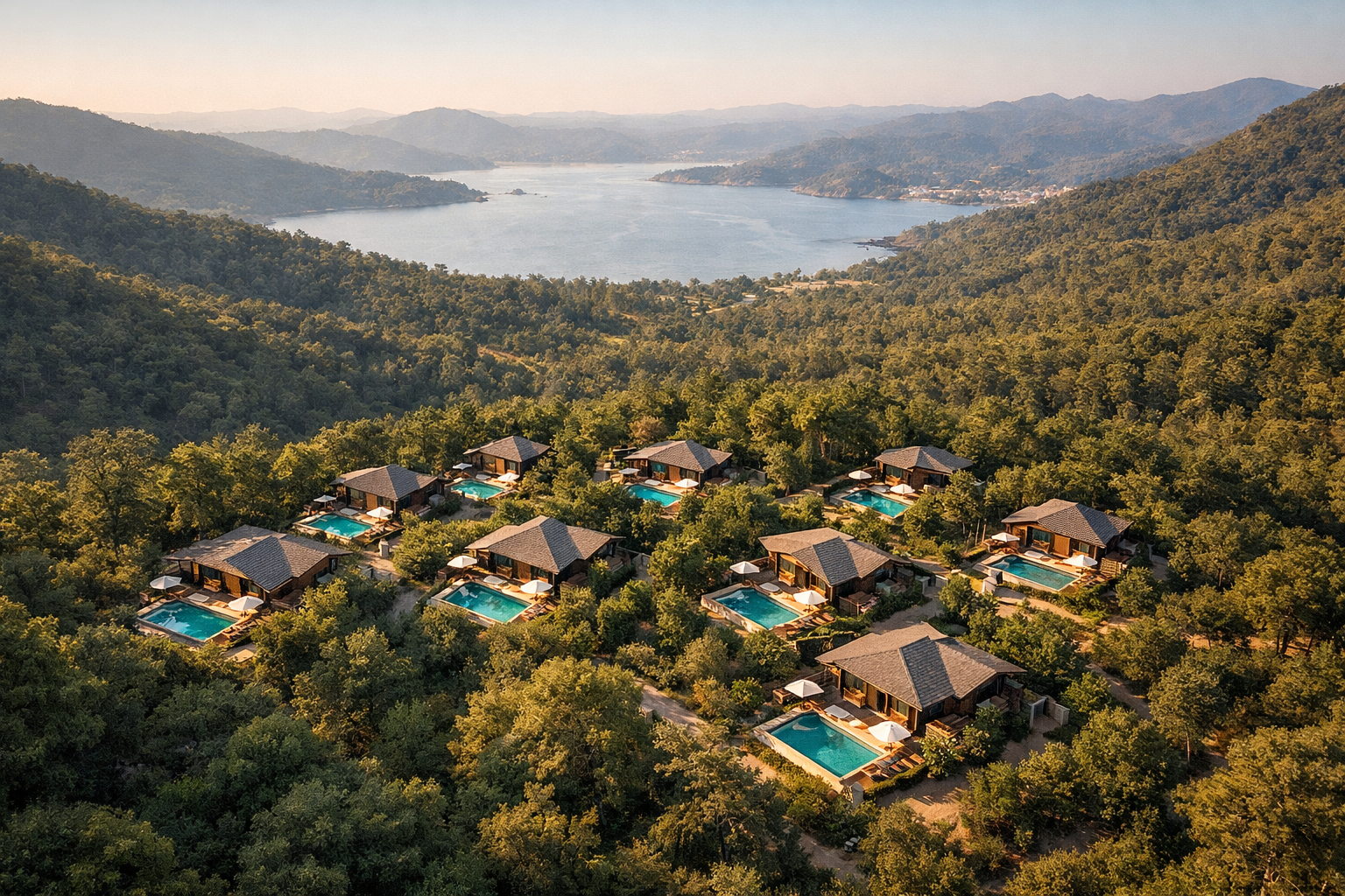 Korunaklı özel havuza sahip helal bungalovlarda mahremiyet içinde tatil yapın. Ailelere uygun, alkolsüz ve doğayla iç içe konaklama.